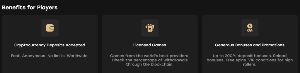 - Kryptomaksut: Tuki yli 35 suurelle kolikolle, mukaan lukien Bitcoin (BTC), Ethereum (ETH), Solana (SOL) ja USDT. Kryptotalletukset antavat 15 % ylimääräisen bonuksen (3x kierrätys).